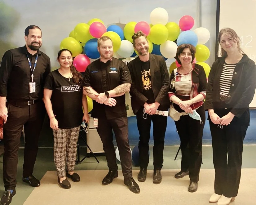 Veg Food Bank executive director Matt Noble, with Makayla Dewit, from Forward Food; City of Toronto, Seniors Services and Long-Term Care, food service and nutrition managers; and Sysco culinary specialists.