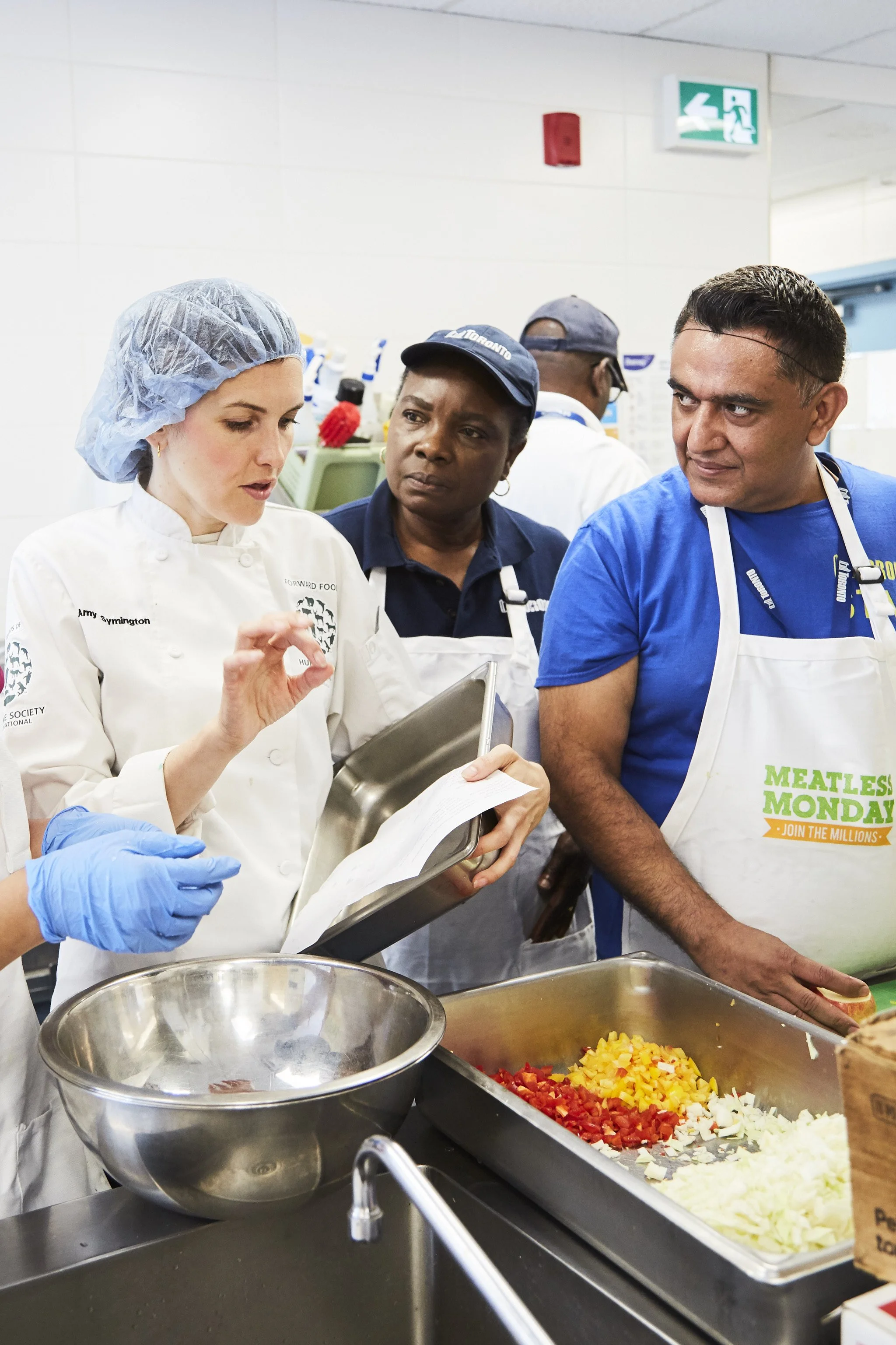 Amy Symington, guiding City of Toronto shelter chefs through one of her plantlicious recipes