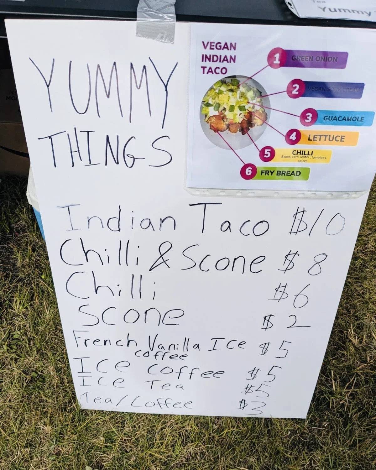 The food was a success. And with a small sponsorship from Veg Food Bank, Yummy Things was able to keep the prices low, while representing Indigenous veganism at the pow wow.