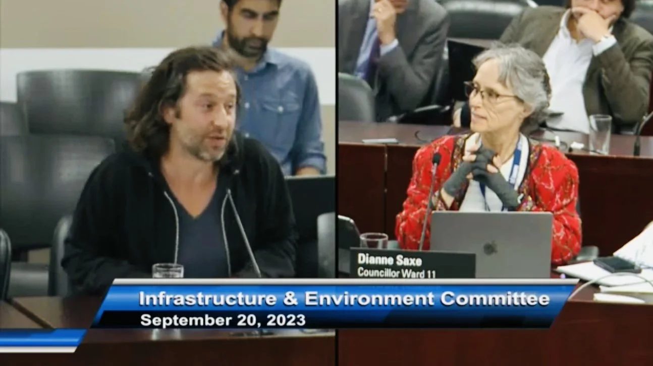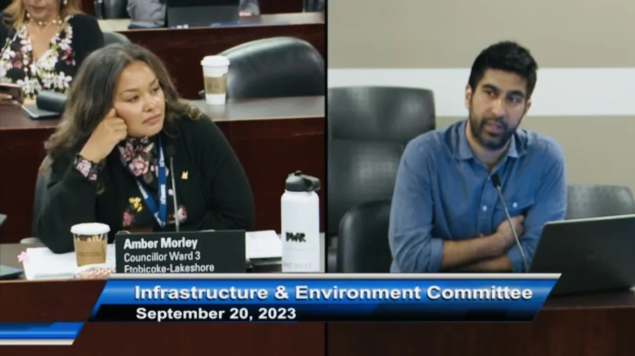 In September (2023), Toronto Vegetarian Food Bank directors Nital Jethalal and Matt Noble, and colleague Riana Topan, from HSI Canada, mobilized to speak at Toronto City Hall, at the Infrastructure & Environment Committee (1:44:00), to urge the City of Toronto to reduce pollution, and to improve animal welfare and public health, by moving towards more plant-based food offerings city-wide.